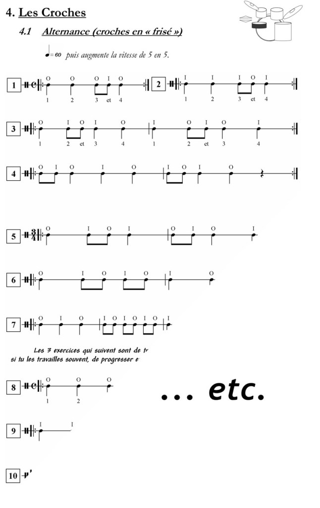 Méthode de batterie progressive pour débuter la batterie et la percussion.