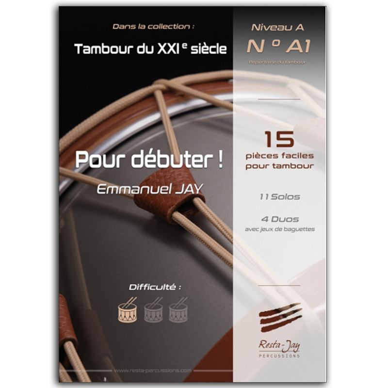 Ces 15 pièces permettent d’acquérir les difficultés nécessaires à l’apprentissage du tambour, tout en respectant la technique traditionnelle de l’école française. Quatre duos viennent ponctuer cet ouvrage pour agrémenter les auditions et concerts.