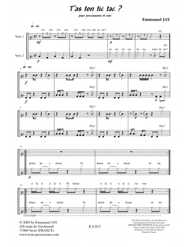 10 compositions pour tambour solo ou à l’unisson.